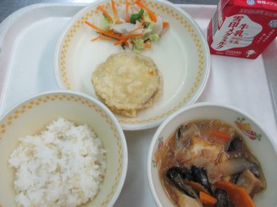 厚揚げ、豚バラ肉、人参、玉ねぎ、竹の子、しいたけ、きくらげを合わせた味噌炒めです。