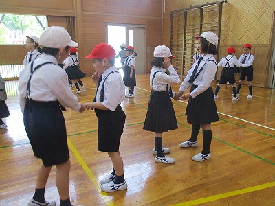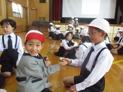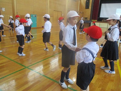 2,3年生は、できるだけ1年生とペアを組むようにしました。上手に1年生に負けてあげる2,3年生。英語と共に素敵な交流ができました。Good job!