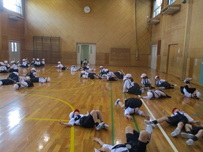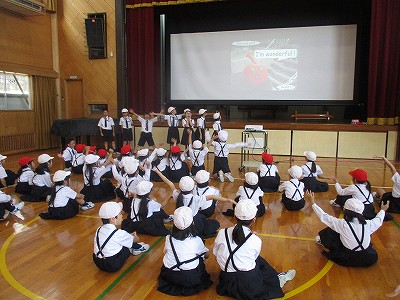 前回に引き続き、元気よく英語のかけ声ができましたが、英語の意味と皆の考える日本語の意味がやや異なっていたので、内容を再確認しました。