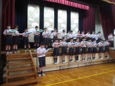 京都の私立小学校の仲間と、音楽を通して交流します。
