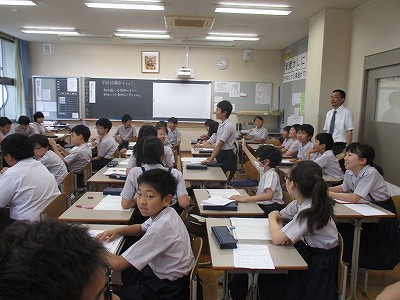 たくさんのお客様の前で少し萎縮していましたが、楽しい学級討論会ができました。真剣に答えられました!