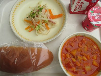 今日の野菜ソテーは「ピーマン」が入っていました。夏に旬を迎える野菜です。ビタミンCも豊富な緑黄色野菜で風邪を予防します。ソテーにして油と合わせたので、栄養価の吸収を効率的にできるよう考えました。ご家庭でも、たくさんとりいれて調理してください。ピーマンを購入する時は、ヘタが六角形のものを探してみましょう。五角形のものより甘いと言われています。