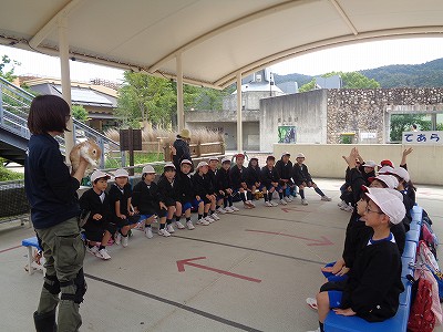 今日は1年生の「動物園内なかよし教室」があり、ウサギやテンジクネズミと触れ合いました。