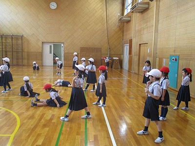 開始前より、4年生リーダーが「だるまさんがころんだ」を進めました。