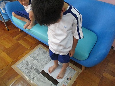 木曜日に、1年生の「土踏まず検査」を行いました。