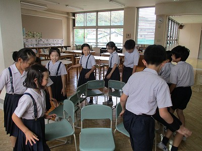 おしまいは、いつものように「はとぽっぽ」の英語歌を歌いながら、いす取りゲームで楽しみました。