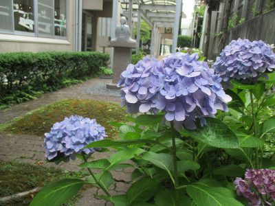 The flower garden is blooming, the school is clean and organized, the hallways are decorated with the interesting art made by the students and there are many decorations and pictures of the Buddha.