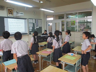 2学期もMERは続きますが、今日は1学期の締めくくりなので、「ほたるの光」を手を取り合って歌いました!