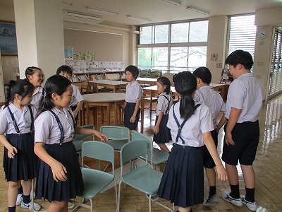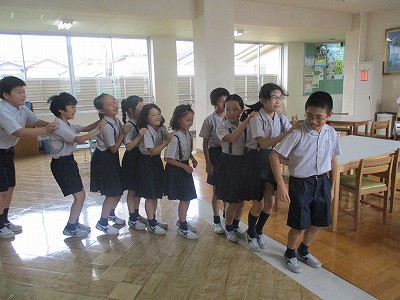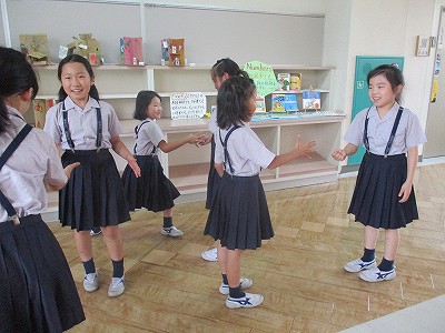 英語の指示に合わせてジェンカの動き!
