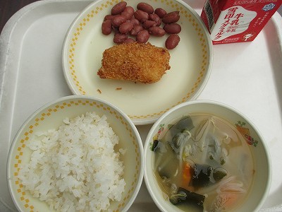 今日の魚は、カレイを使っています。食べる時にソースをかけたりしていないため、下味の塩とこしょうは少し多めに使用して、味が薄すぎないように考えています。また、パン粉をつける時は小麦粉・水・卵をといたものにくぐらせますが、余分なカロリーを抑えるためにも、衣はうすくつくように心がけています。れんげ給食は2日目です!
