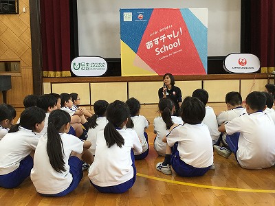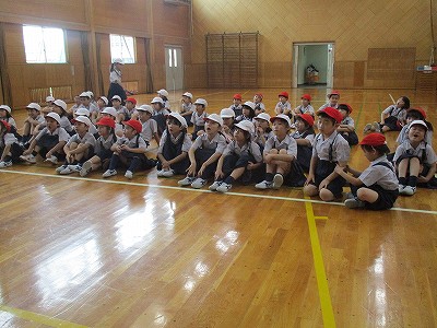 ゲームや応援の仕方を学び、楽しんだ後は、高田先生からのお話を聞く時間を持ちました。視覚の障がいを持っていることが、自分にとっては当たり前のことであるので、自分自身が「大変だ…」と思ったことはない、身体の障がい有る無しに関わらず、みんなには「困っている人に手をさしのべる人になってほしい」と話して下さいました。また、“あすチャレ!”の意義を教えて下さる時には「とことん頑張りたいこと、夢中になれることを掲げて、明日を迎えよう!」と、5年キッズにやさしく、熱く語りかけて下さいました。