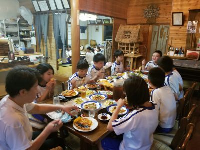 お風呂の後に、学習の振り返りや意見交換会を持ちました。