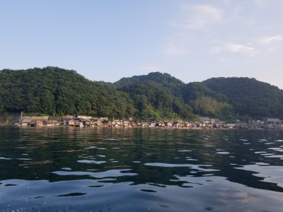 ここからは2班に分かれて、ブリ等を養殖している「海上いけす」、岩ガキを養殖している「海上いかだ」での見学です。