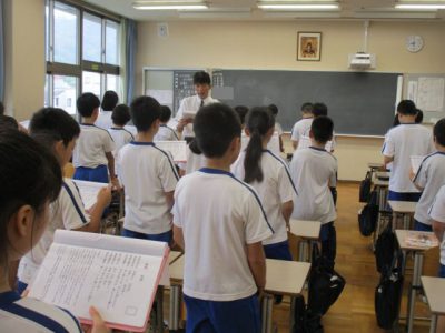 谷川俊太郎さんの「みんみん」や、論語を、音読しているところです。