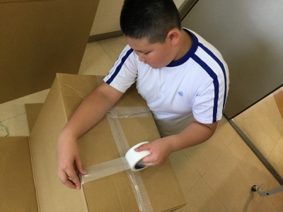 古着集め用の段ボールを組み立てたり…