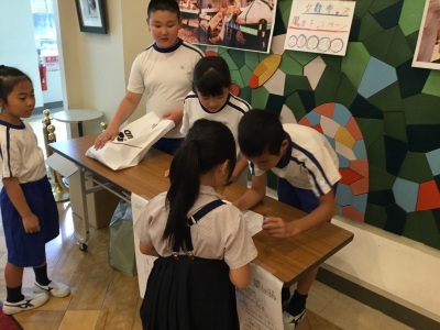 名前をチェックし、汚れや傷みがないかを調べています。「明日に、持ってくるね!」と話してくれた文教キッズもいます。今週の金曜日まで、回収活動を続けてみようと、話し合いました。みなさんのあたたかいご支援、お待ちしています!