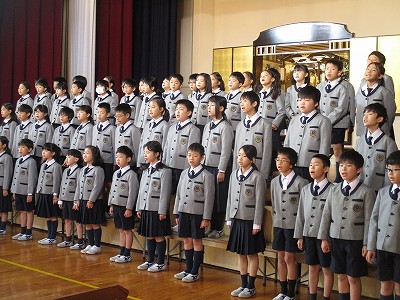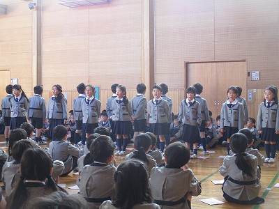 始めに、2,4年生が、秋を代表する日本の童謡を3曲を歌いました。