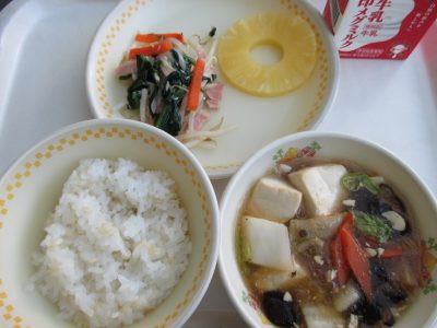 もやしやほうれん草、ベーコン、ツナを合わせたソテーです。それぞれの材料を別で炒めたり、ゆでたりした後に、すべて混ぜ合わせて、熱した油を回しかけます。野菜に余分な熱が加わるのを防いでくれます。
