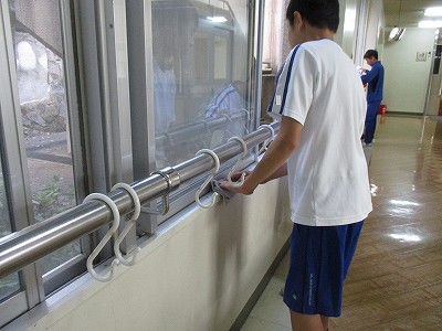 1階廊下の窓枠掃除と、普段はできない掃除に励みました。