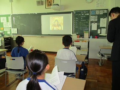 講堂での礼拝と同様に、教室で仏教聖歌を歌い、お十念をお唱えしました。