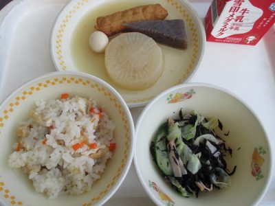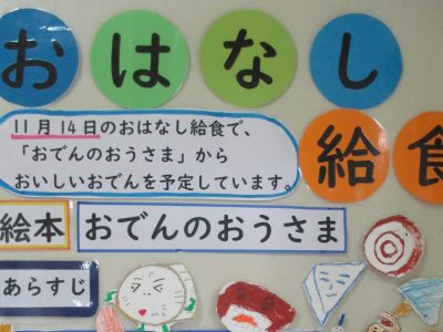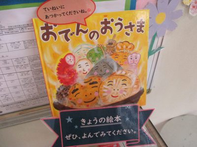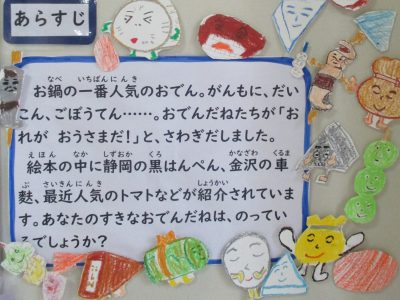 「おでんのおうさま」という絵本から、大根・卵・こんにゃく・ごぼう天が入ったメニューでした。