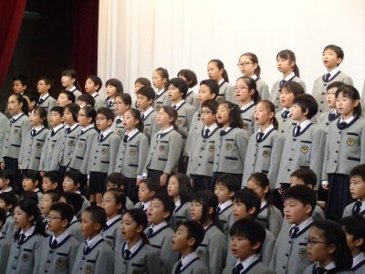 秋を代表する子どもの歌を、二部合唱で歌いました。