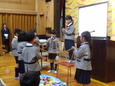 イベントゲーム委員5年生が「にょろにょろ うなぎ」ゲームをしました。