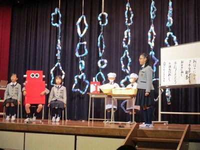 【1年生・舞台発表『音読ランドへ ようこそ』】