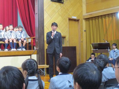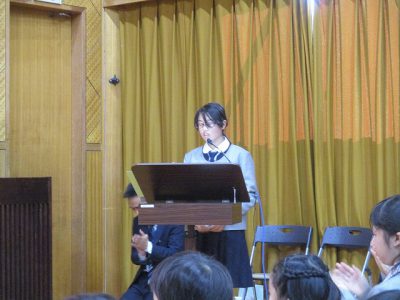 児童会本部メンバーより、鑑賞のポイントの話がありました。