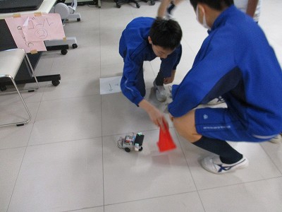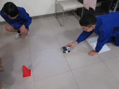 いつもとちがうロボットを使って、「行って戻ってくる動き」をプログラムしました。