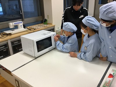 昼休みに切り分けておいた“さつまいも”を柔らかくするために、レンジにかけるところです。