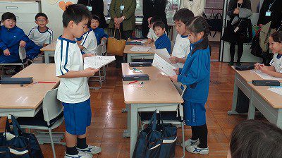 授業の最後は、昨日全校の前で発表した「ひとつのことば」の詩を音読しました。