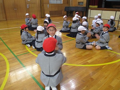 いつものように、開始前より4年生リーダーによる「だるまさんが転んだ」を楽しんでいるメンバー。