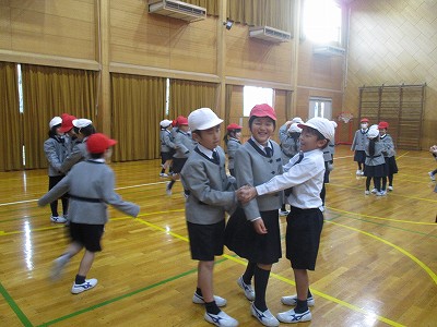 ペアになって「アルプス一万尺」の英語歌・手遊びを楽しみました。