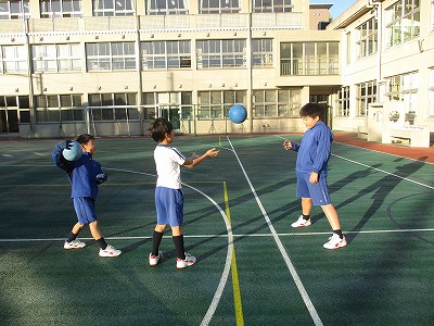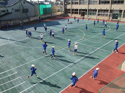 朝7時50分。子ども達が運動場に出て、リフレッシュする時刻です。