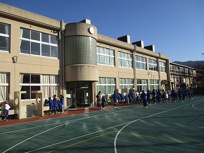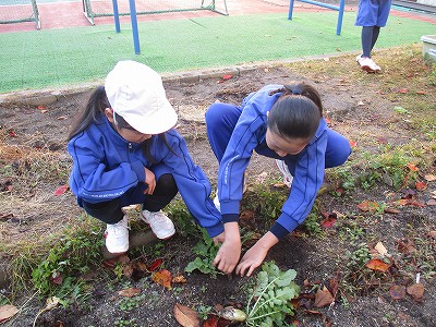 早朝に、まだ霜は降りていませんが、子ども達は「寒いねぇ・・」「私の家の近く、気温が・・・度やった。」等と、おしゃべりしながら登校していました。