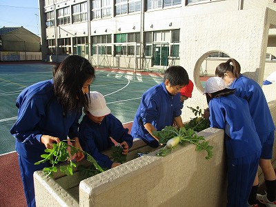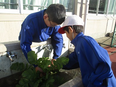 2学期がスタートした9月、1年生と6年生が蒔いた大根の種。