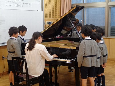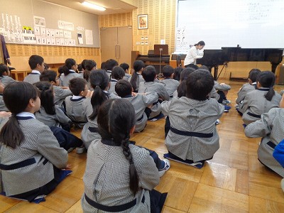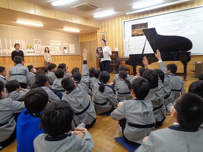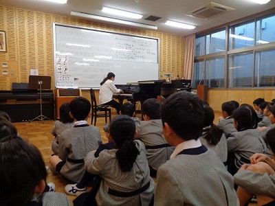 ピアニストの方が来られ、3,4年生が演奏とお話を聞きました。