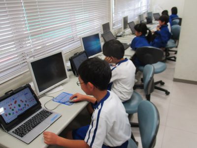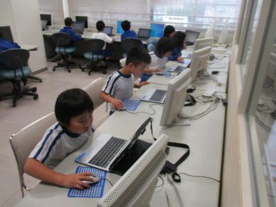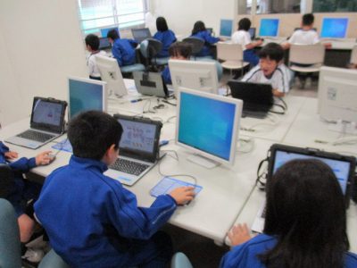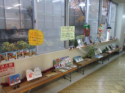 12/18水【外の景色・1年パソコン学習・3年朝歌・図書室・クリスマス英語絵本展】