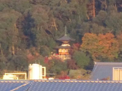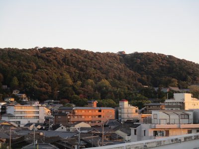 北東に目を向けると、比叡山や平安神宮の鳥居が見えています。