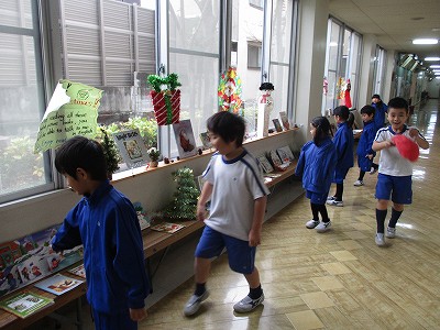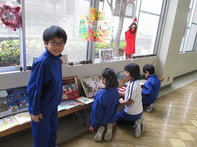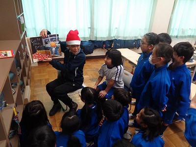 同じく中間休み、2年生教室で「クリスマス英語絵本の読み聞かせの会」をしました。