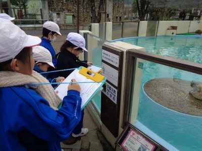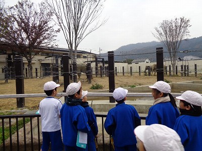 理科の学習後、動物のポエム(詩)作りの目的で、近隣の京都市動物園に出かけました。