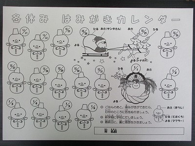 冬休みの《歯磨きカレンダー》を本日、配りました。