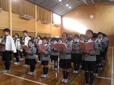 式の終わりは、全員で校歌を斉唱しました。
