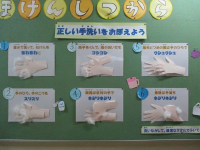 1月の保健室掲示は「正しい手洗いを覚えよう」です。