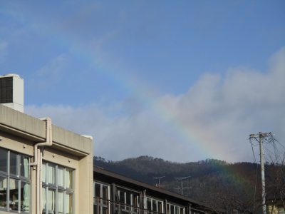 ふと、多目的室から外を見ると、東の空に虹が出ていました。