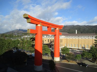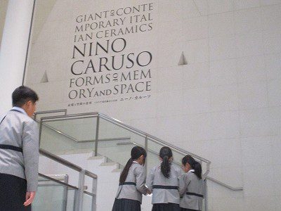 英語フレーズを皆で確認してからの出発でしたが、途中で小雨が降ってきたので、行き先を変更して、京都国立近代美術館を訪ねました。
