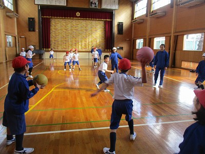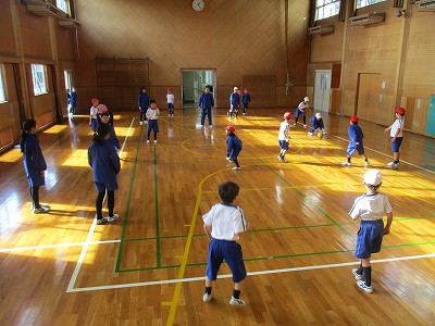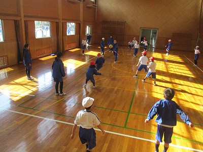 1年生の動きと英語フレーズが光り、楽しい英語ドッジになりました!