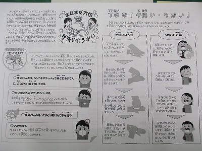 来週月曜日発行の保健だよりに「手洗い・うがい」の方法と「咳エチケット」について載せています。