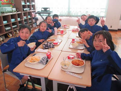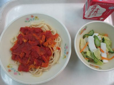 「スパゲティは、太麺で歯ごたえがありました。真っ赤でした!」